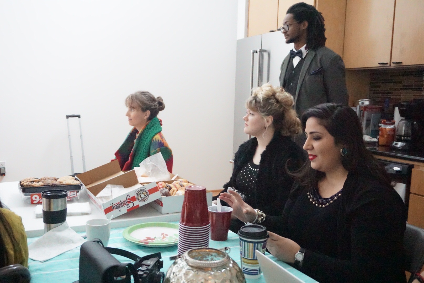 It’s not often that I have a look and evening plans for you all at once but today is your lucky day! What if you showed up in this fun navy fuzzy dress and wine colored hooded coat from Inclan, to Hungry’s grand opening to Upstairs on New Year’s Eve?!? Sounds like a slam dunk to me, plus you’d be supporting two Houston based businesses at the same time 🙂